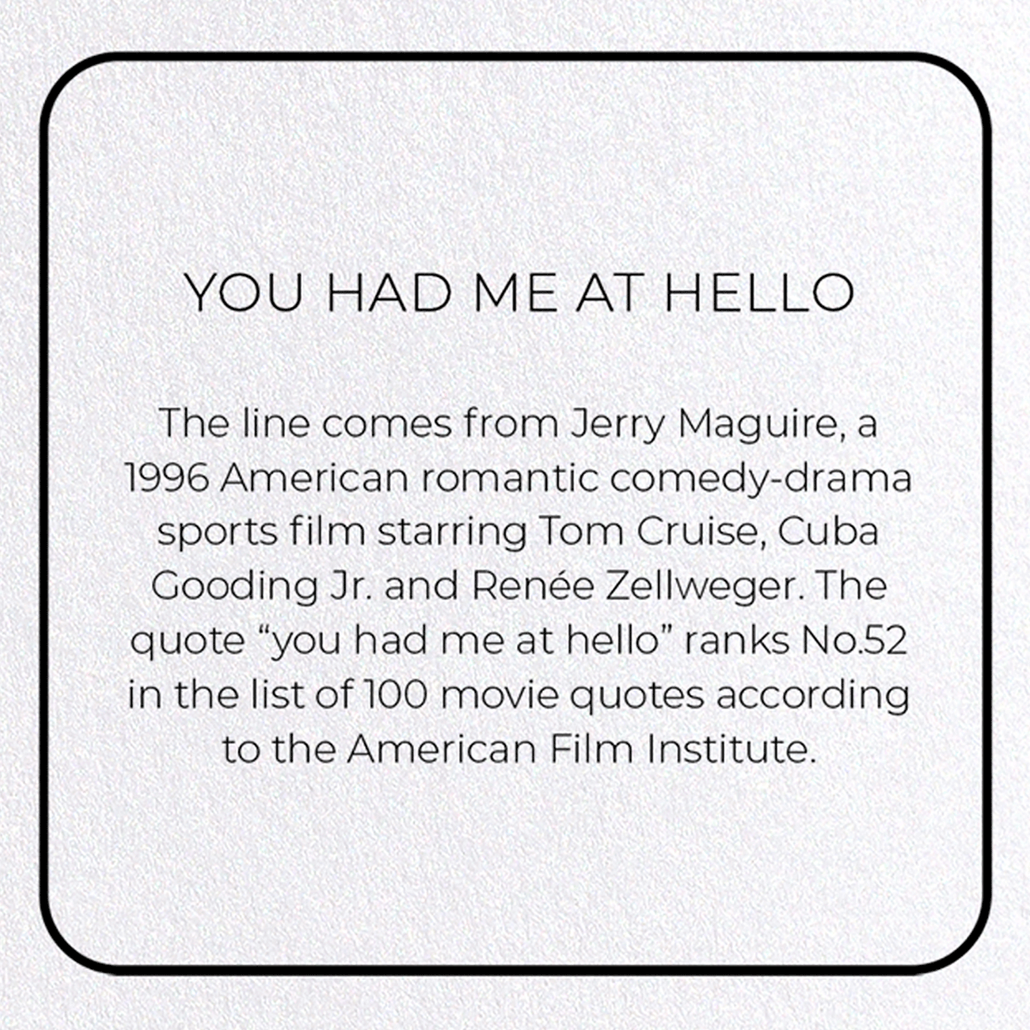You had me at hello. | Hello quotes, Sweet love quotes, Love